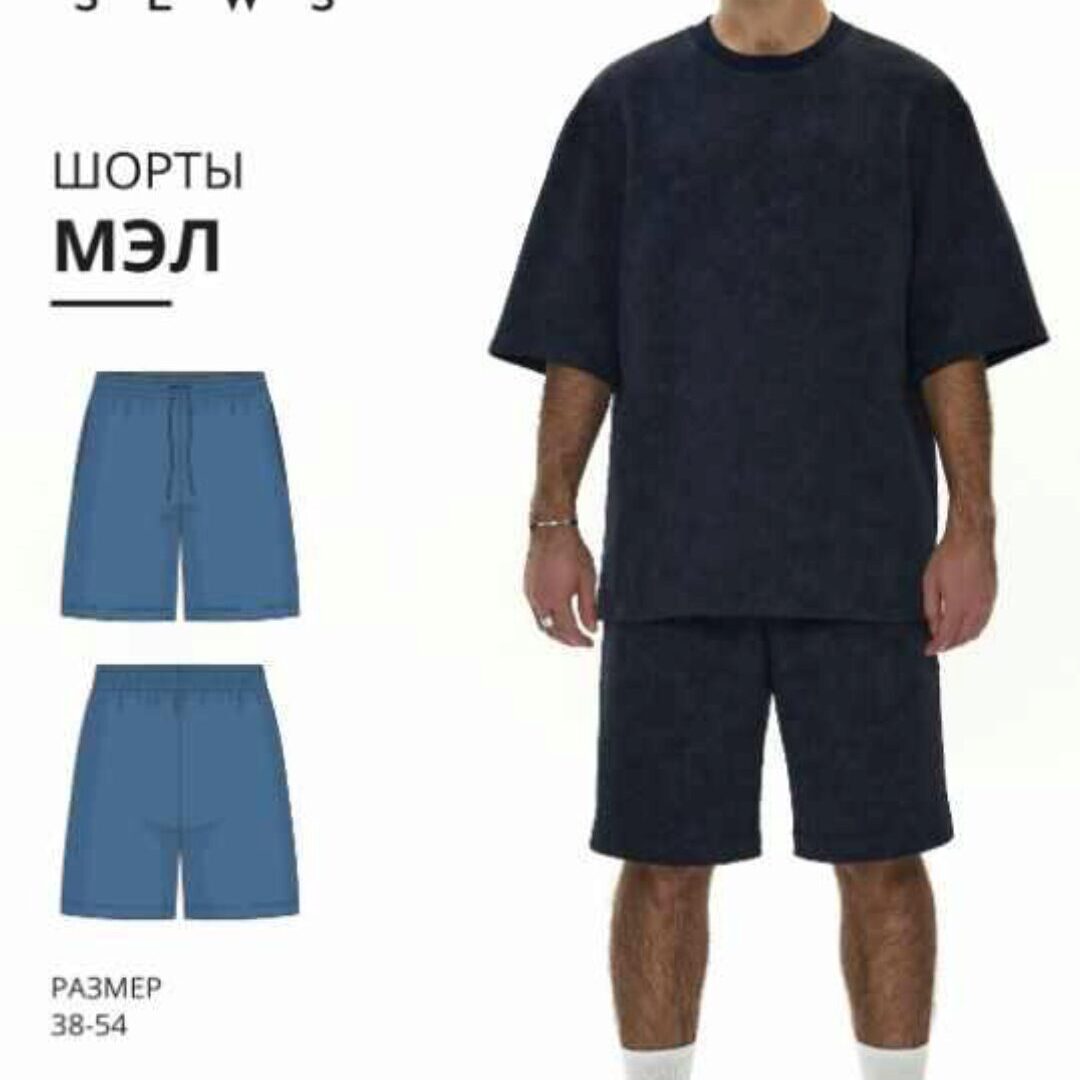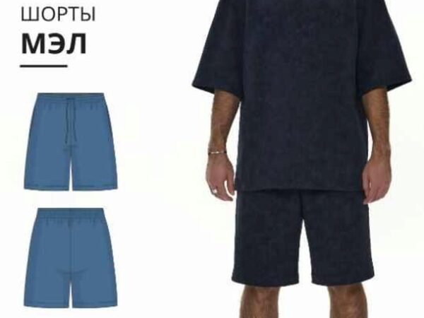 Выкройка мужских шорт умеренного объема, прямого силуэта. В боковых швах шорт расположены карманы. Пояс шорт цельнокроеный на резинке с обметанными петлями, через которые вставлен декоративный шнур. Длина шорт до колена. Для пошива шорт подойдут трикотажные полотна, которые обладают следующими