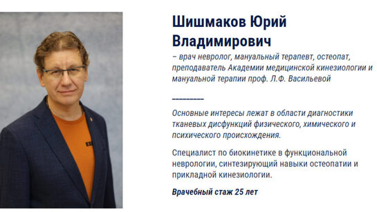 Семинар ведет Татьяна Ильичева. Врач невролог, прикладной кинезиолог, ученик Ю.В. Шишмакова Биокинетика - одно из направлений остеопатии. Отличительной чертой остеопатии от мануальной терапии является особое внимание к тканевому чувству, а именно способность руками понять и выслушать ткань, понять