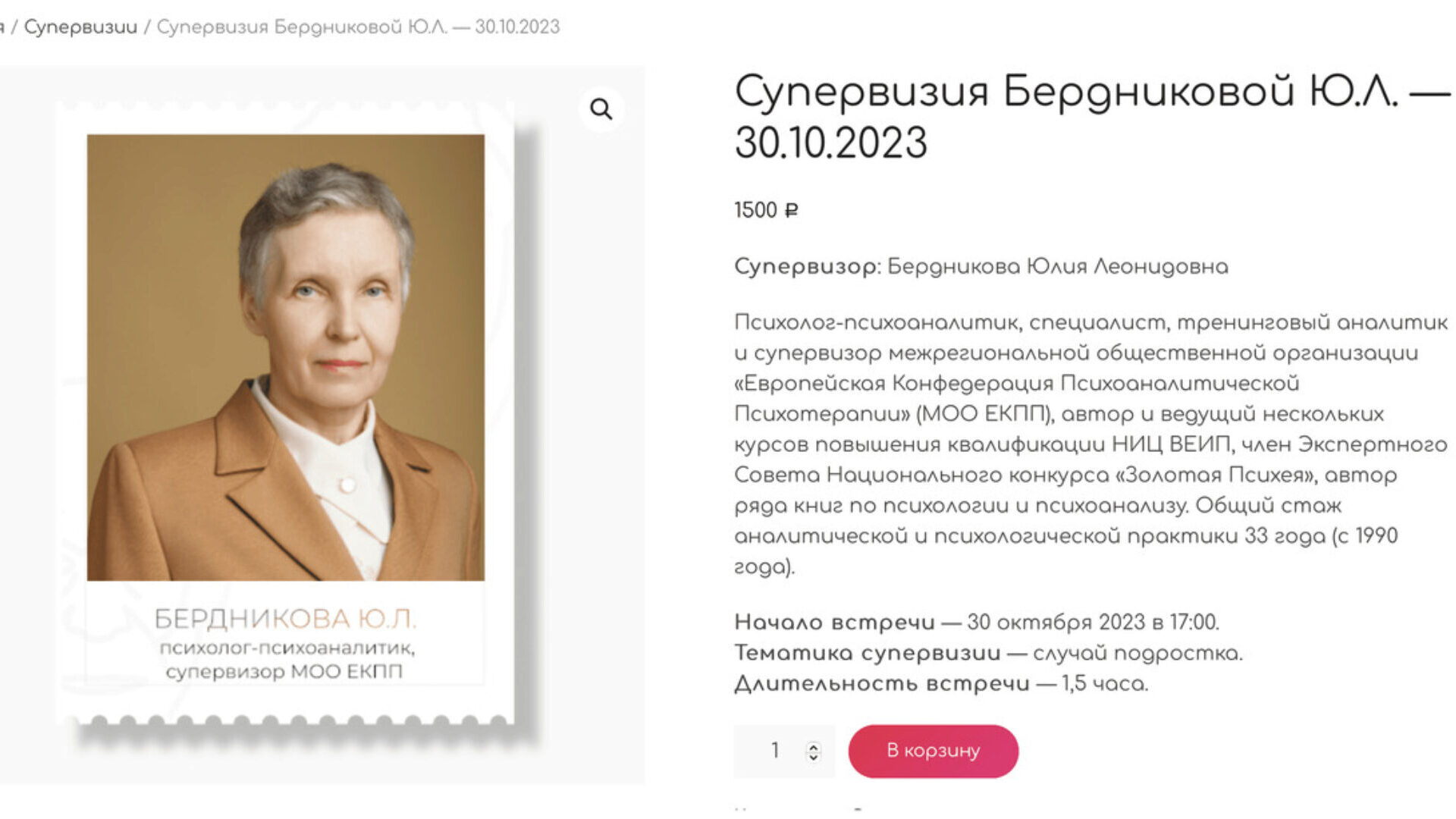 Отзывы о курсе «Психоаналитическая супервизия 30.10.23» от Юлии Бердниковой