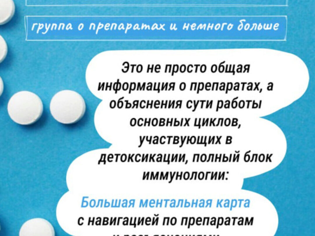Это не просто общая информация о препаратах, а объяснения сути работы основных циклов, участвующих в детоксикации, полный блок иммунологии: