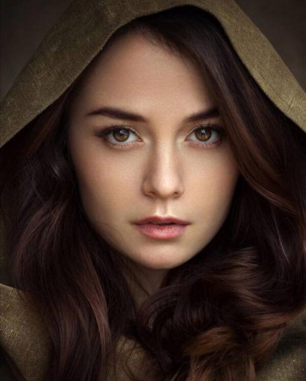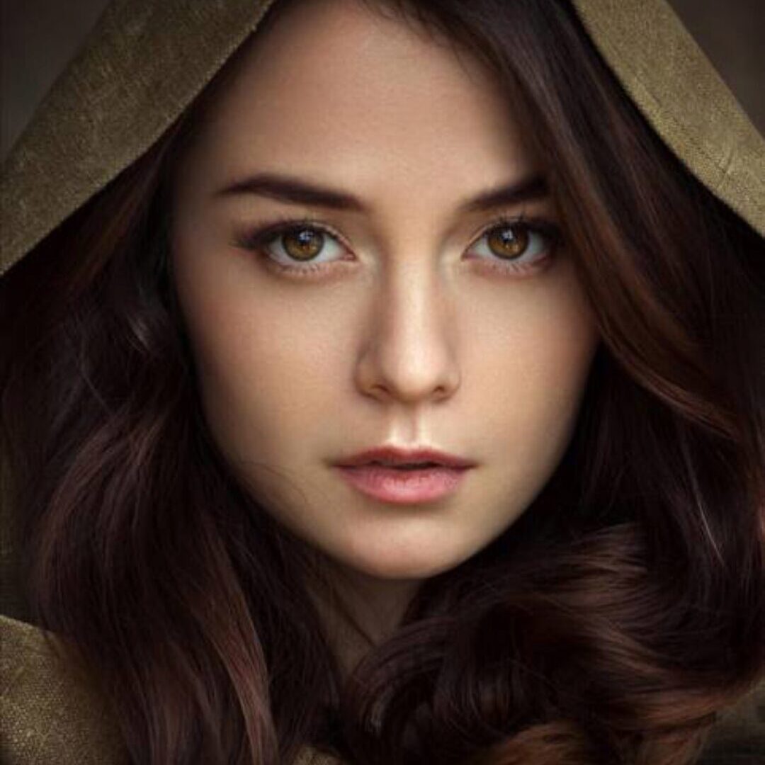 Я покажу как написать кожу - ее цветовые нюансы, тени, свет, живые глаза, красивые брови, чувственные губы, шикарные локоны и фактуру ткани на капюшоне. Так же, сделаем фон с плавным градиентом.