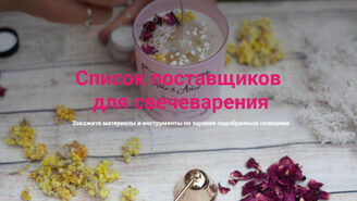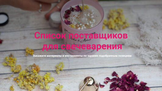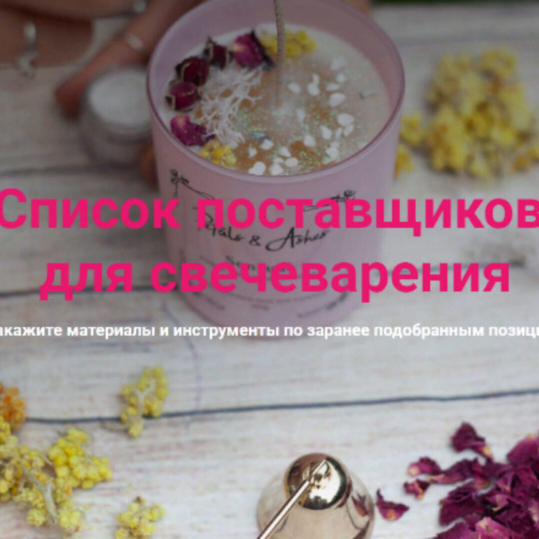 Обновленный список 2022 из России и Китая! В списке представлены Контакты: -воска; -аромамасла для свечей, саше и диффузоров; -фитили; -банки/стаканы; -крышки; -силиконовые формы для свечей и гипса; -сухоцветы; -упаковка; -магазины с противоречивыми отзывами. Так же у некоторых поставщиков есть моя