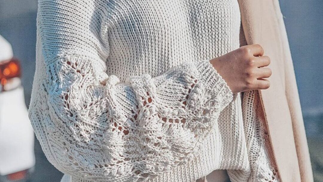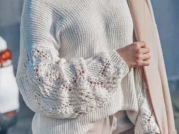 В изделии не жарко, потому что джемпер свободного силуэта и с ажурными рукавами, воздух легко проникает сквозь дырочки и обеспечивает лёгкость ощущений!