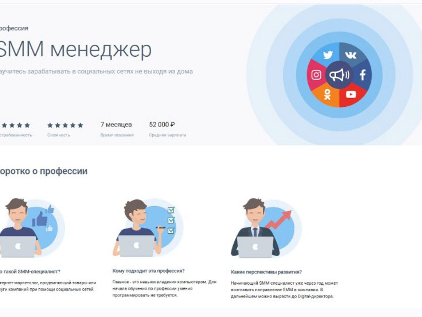Обучим востребованной профессии и подскажем как найти работу Курс «SMM-менеджер» поможет тебе: Разобраться с тонкостями и принципами работы SMM-специалиста Улучшить и систематизировать свои знания по специфике продвижения в Facebook, Instagram и YouTube Понять разницу между продвижением товара и