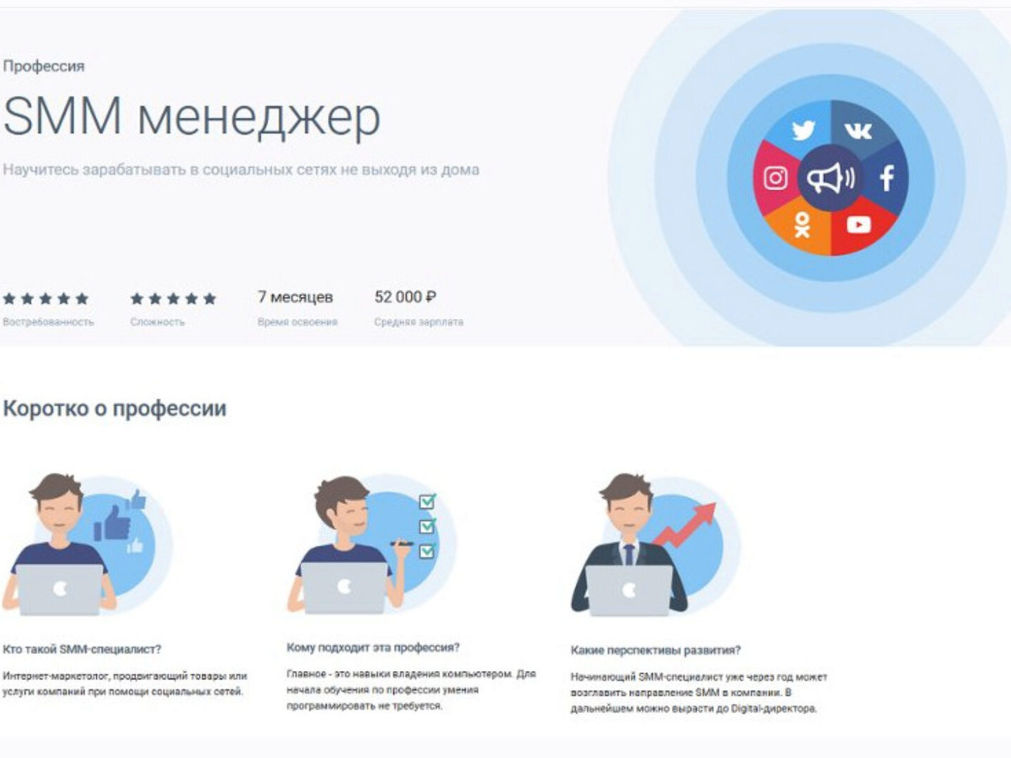 Обучим востребованной профессии и подскажем как найти работу Курс «SMM-менеджер» поможет тебе: Разобраться с тонкостями и принципами работы SMM-специалиста Улучшить и систематизировать свои знания по специфике продвижения в Facebook, Instagram и YouTube Понять разницу между продвижением товара и