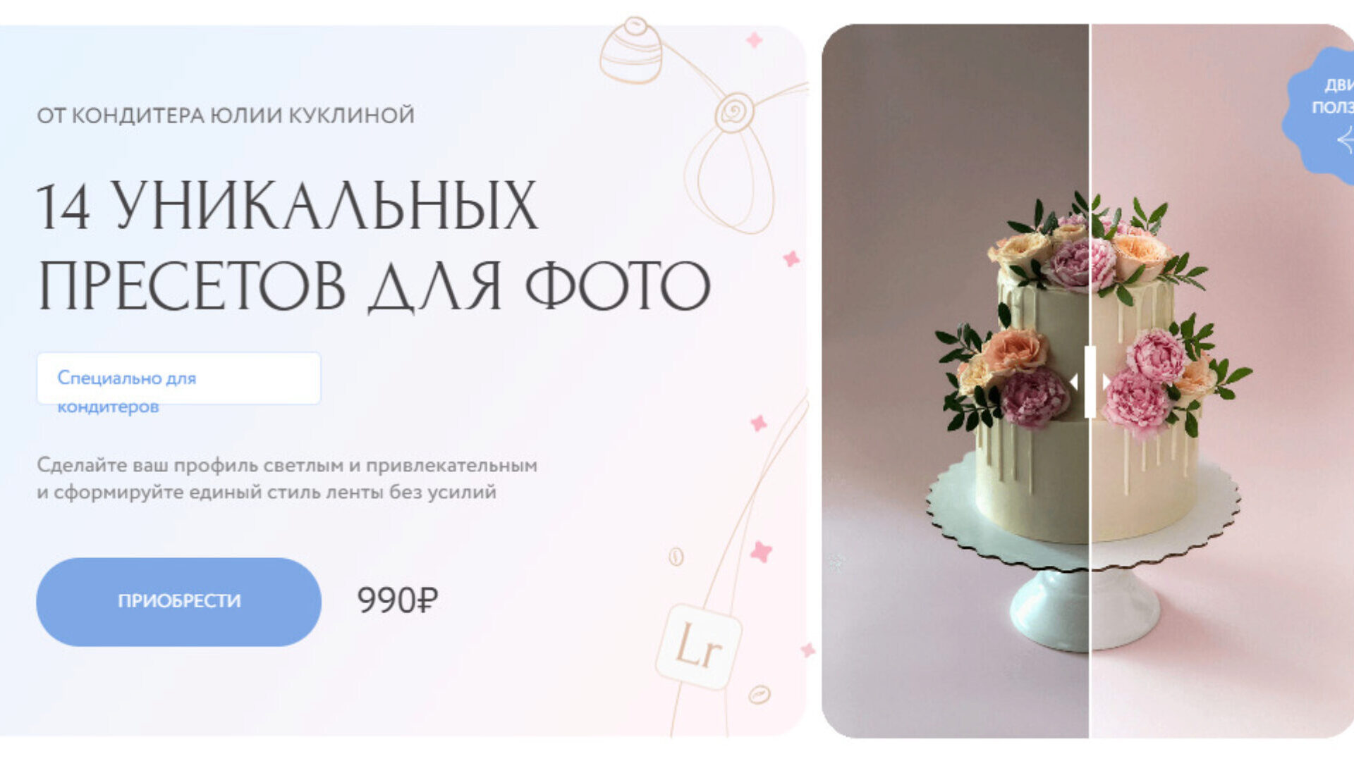 - Пресеты - это простой и быстрый способ обработать фотографии ваших десертов. Часто на фотографиях кондитерские изделия выглядят тускло не так, как в жизни.