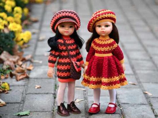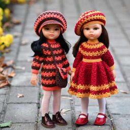 - Пряжа для платьица Alize Angora Gold Simli 100г/500м (20% шерсть, 75% акрил, 5% металлик) или любая другая пряжа, схожая по метражу; Пряжа для берета Семеновская пряжа KABLE 100г/430м (100% хлопок), Пряжа из Троицка Фиалка 50г/210м (100% хлопок) или любая другая пряжа, схожая по метражу; - Спицы