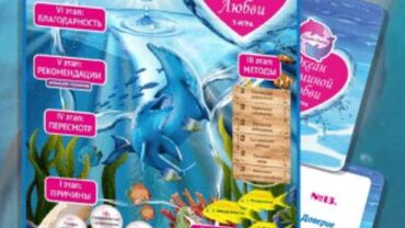 Автор: Юлия Нисанова (психолог, сертифицированный специалист по ЭОТ и работе с МАК, автор психологических игр «Океан маминой любви», «Сохрани свое сердце» обучающий тренер школы игропрактики «Игры Жизни».) Комплектация: • игровое поле формат А1 (61х82 см); • игровой кубик на 10 граней; • игровой