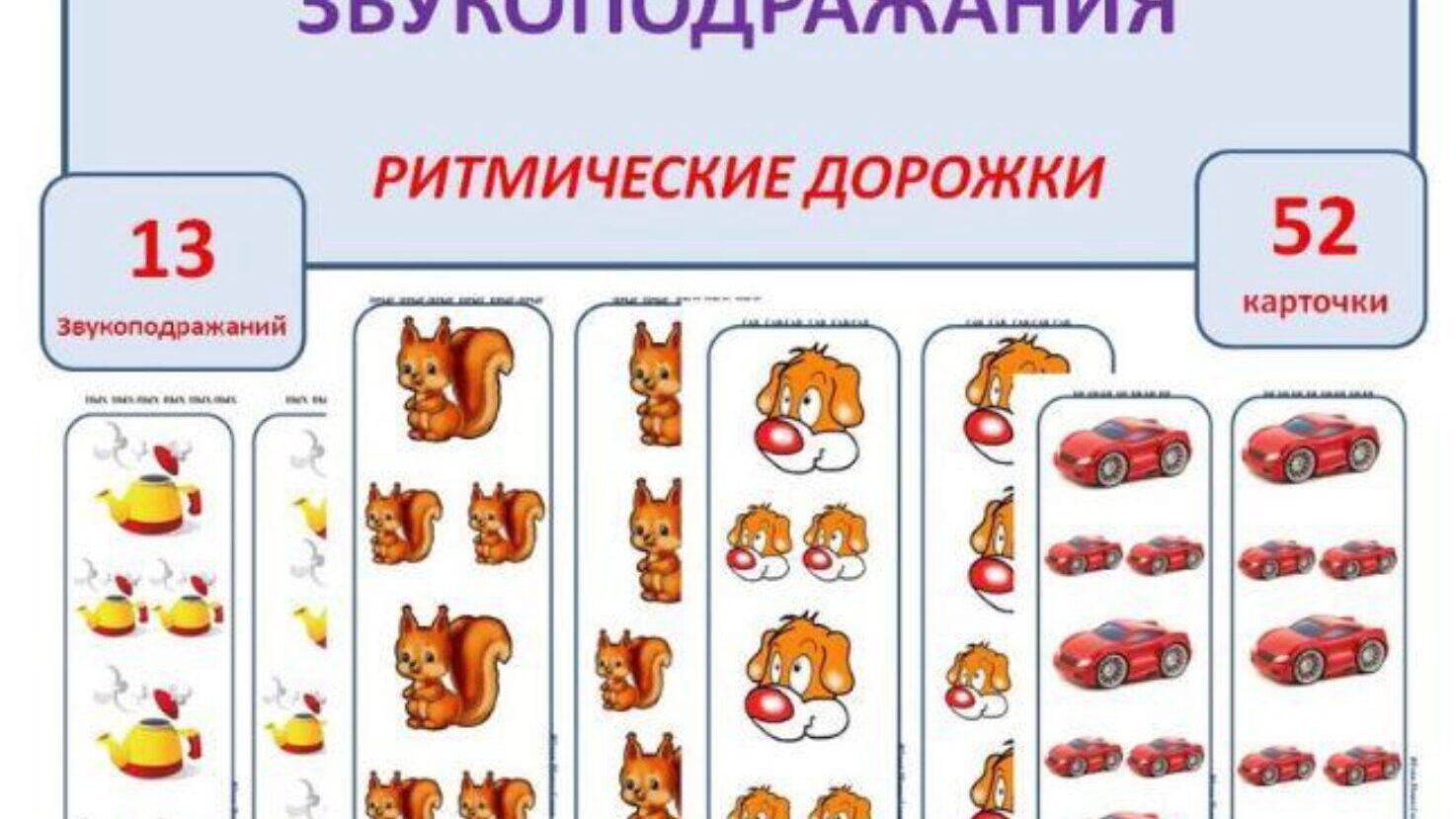 Юлия Новосёлова «Карточки Звукоподражания. Ритмические дорожки» — Шкатулка логопеда