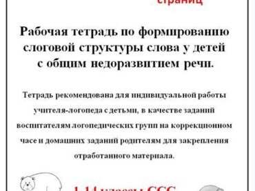 В тетради отрабатываются слова 6-9 типа ссс. В речевом материале используются слова без звуков Р-РЬ. В пособии 58 страниц формата А4. Черно-белые контурные картинки. Экономно при распечатывании. Нравится детям. Проговариваем и раскрашиваем или заштриховываем.