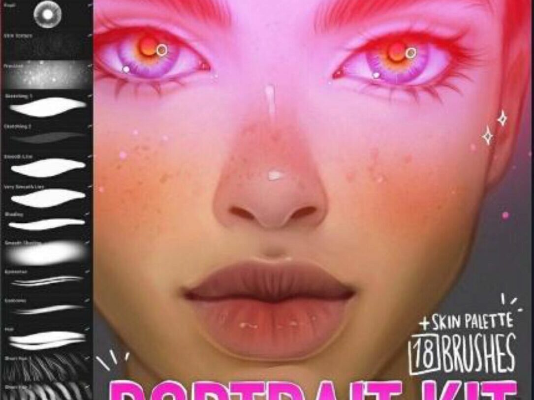 Юлия Разумова «Портретный набор из 18 кистей + палитра кожи для приложения Procreate» — Кисти
