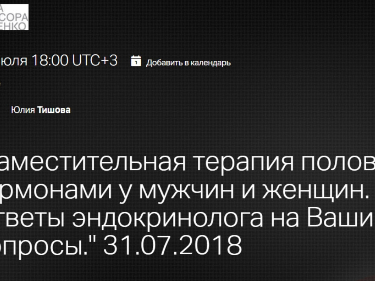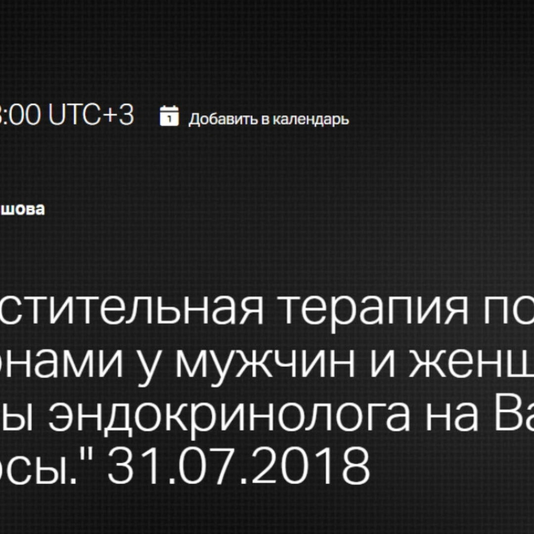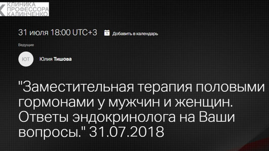Юлия Тишова «Заместительная терапия половыми гормонами у мужчин и женщин. Эндокринолог отвечает на вопросы» — Клиника Калинченко