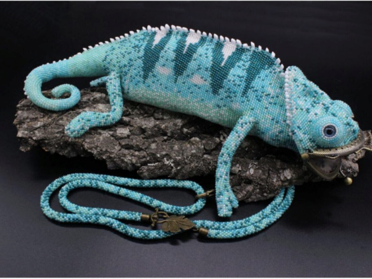 Почему я так люблю все чешуйчатое и хладнокровное? Во-первых, это красиво. Бисер, пайетки и фантазийной формы бусины отлично передают фактуру шкурки. «Как живое» всегда привлекает внимание и демонстрирует возможности мастера. Фотографии с этими работами неизменно вирусятся и сами продвигают ваше