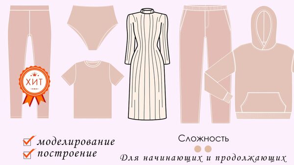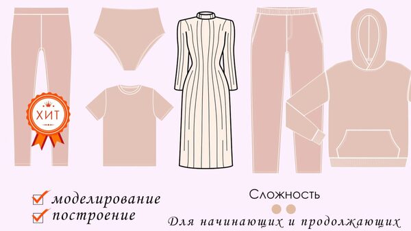 Вы научитесь кроить и шить 5 изделий (свитшот, платье, кроп-топ, юбка и штаны) за 1 месяц В результате курса ты: сошьешь свой свитшот, платье, юбку и крое-топ, штаны научишься строить свои собственные выкройки трикотажных изделий узнаешь, как считать коэффициент эластичности трикотажа и учитывать