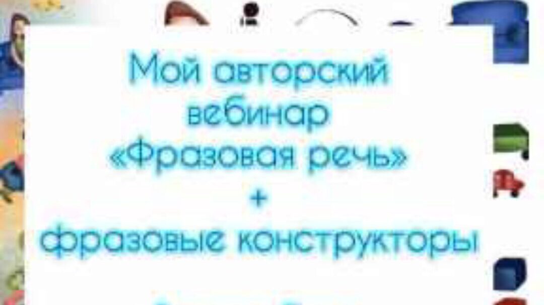 Я подготовила для Вас вебинар «Фразовая речь», на котором с помощью моих фразовых конструкторов и дополнительных игр мы научим малыша общаться фразами и отвечать на вопросы.