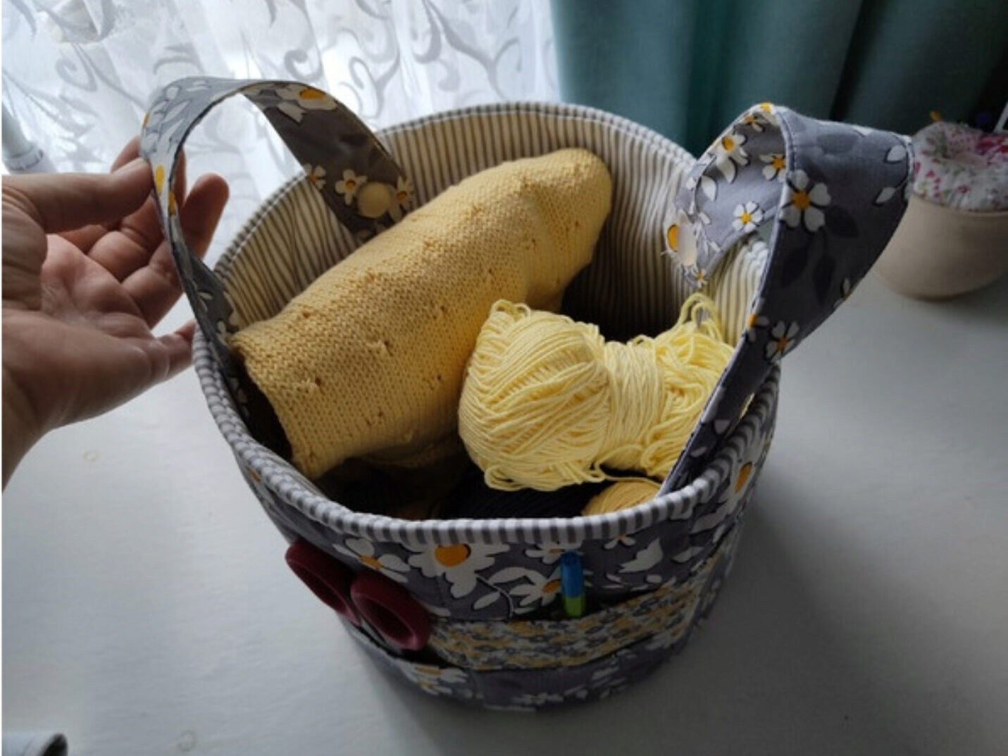 В курсе по органайзеру для вязания и проектным сумкам такая же насыщенная программа: Все о подготовке ткани, разнообразие материалов Технология пошива проектной сумки (три варианта раскроя - цельнокроенная, из ткани с направленным рисунком, комбинированная) МК по пошиву косметички с объемным дном и