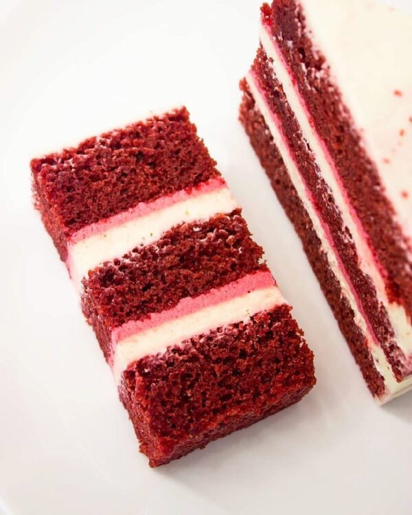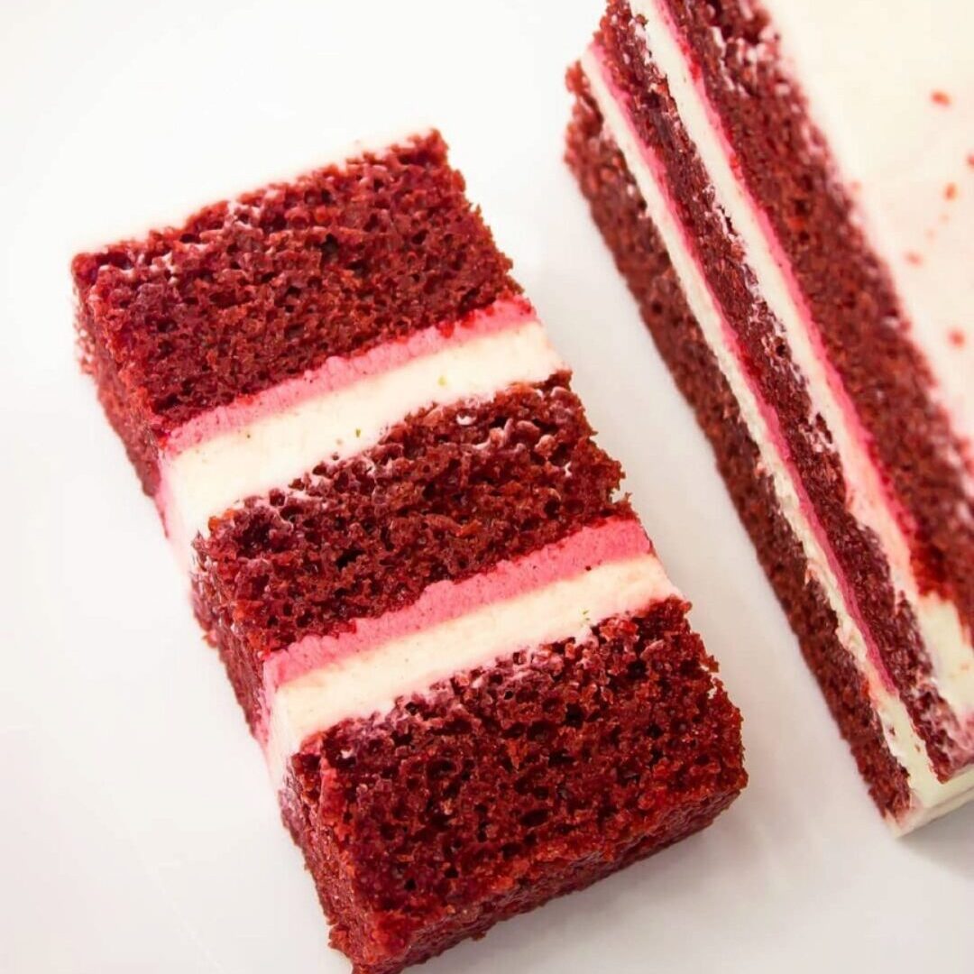 Обновила свой красный бархат, теперь он с клубничным ганашем, так гораздо интереснее.