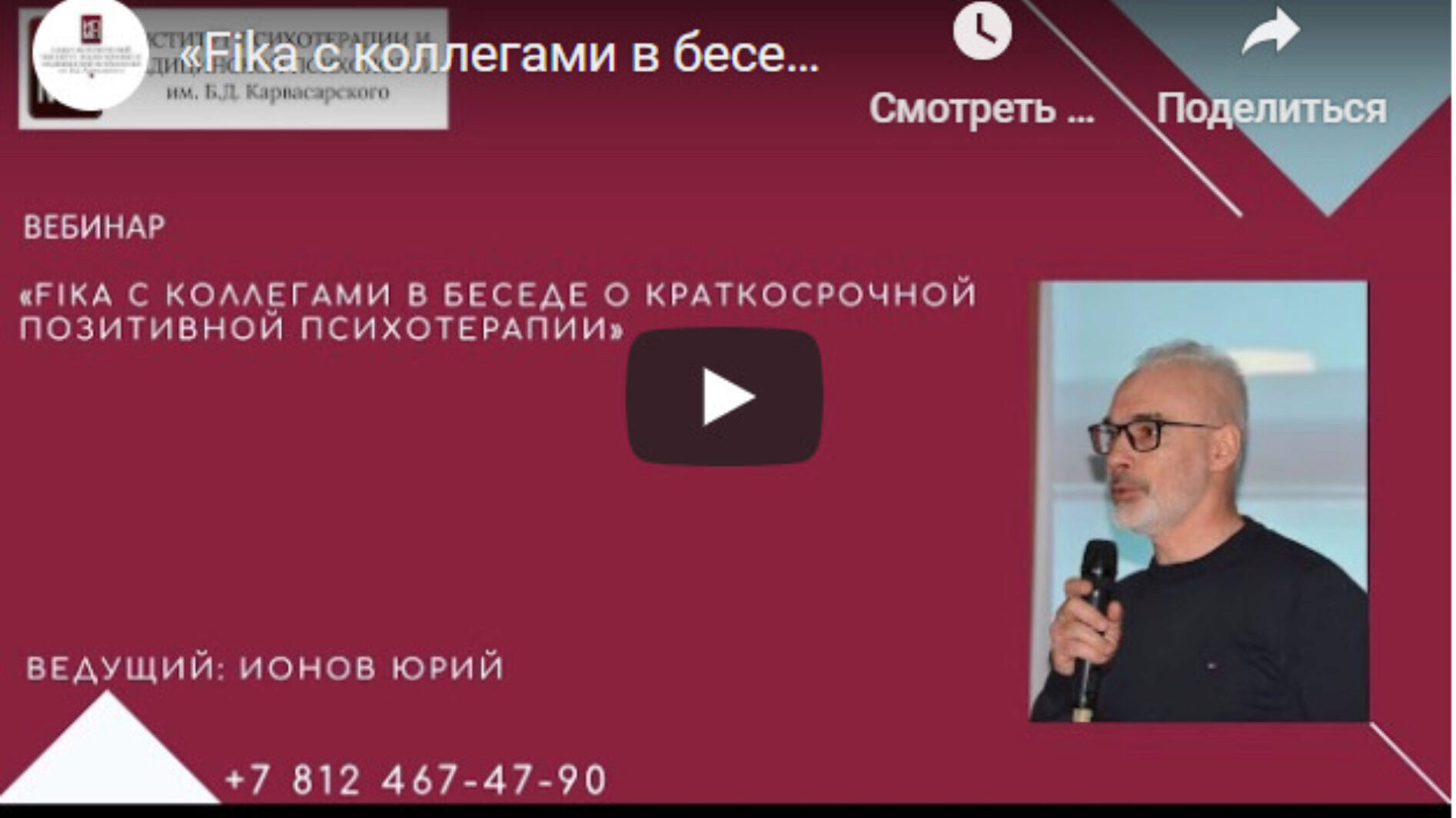 Юрий Ионов «Краткосрочная позитивная психотерапия - SFBT» — ИПМП Карвасарского