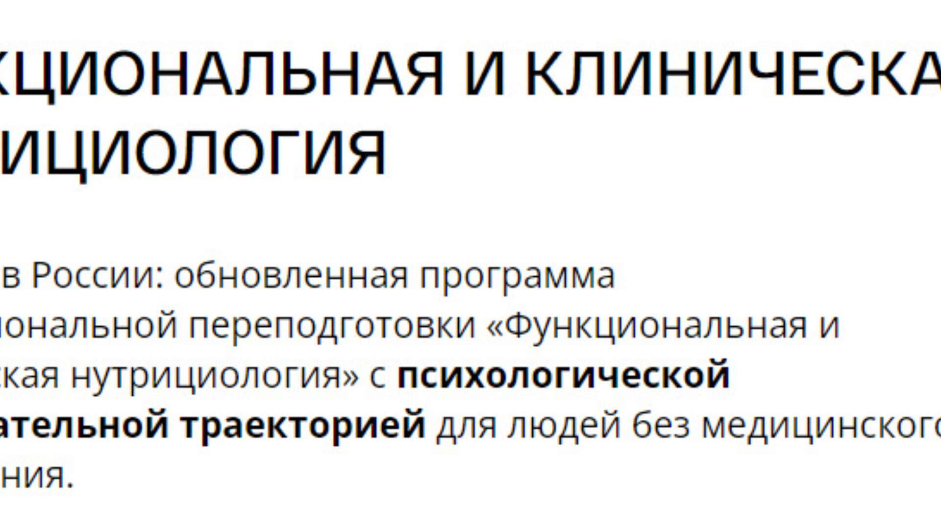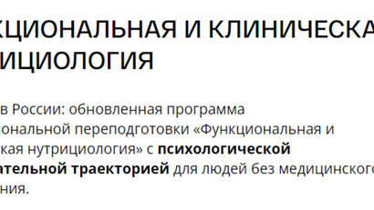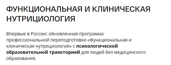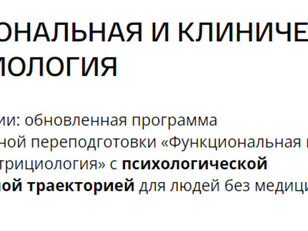 Первая в России международная университетская программа профессиональной переподготовки специалистов по функциональной и клинической нутрициологии для людей без медицинского образования. Кому подойдет программа: -Профессионалам в сфере ЗОЖ: специалистам PreventAge-медицины, health-коучам,