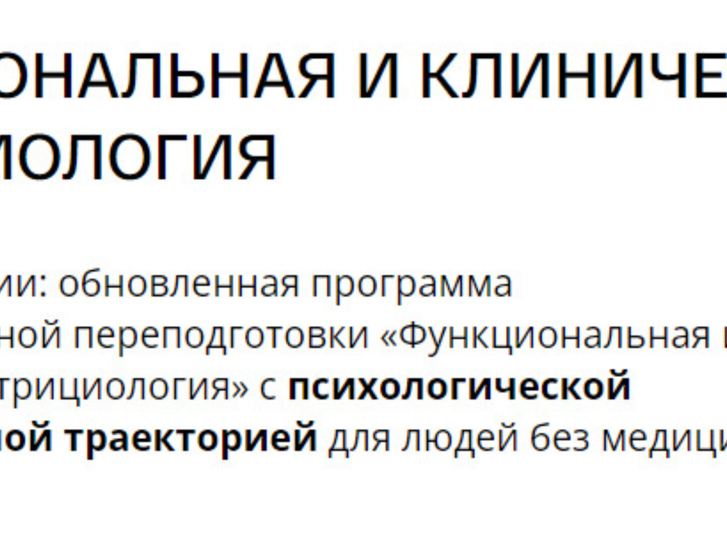Функциональная и клиническая нутрициология Первая в России образовательная программа профессиональной переподготовки по функциональной и клинической нутрициологии для лиц без высшего медицинского образования Функциональный нутрициолог: Помогает с комплексным восстановлением здоровья, молодости и