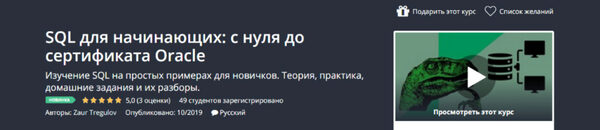 Отзывы о курсе [Udemy] SQL для начинающих: с нуля до сертификата Oracle (Zaur Tregulov)