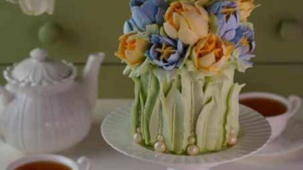 - Торт «Крокусы». Мятный зефир с шоколадной крошкой, шоколадный влажный бисквит и зефирные крокусы. Для приготовления этого торта потребуется только одна насадка для цветов. Создание крокусов подойдет новичкам и тем, у кого не получается работать насадкой для тюльпанов.