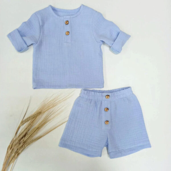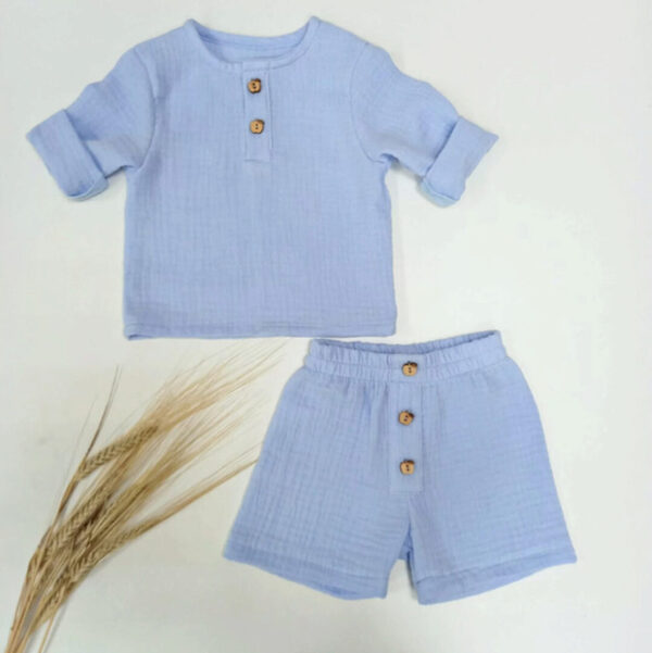 На полочке застежка поло с пуговицами, на штанах ложный гульфик (планка). Модель умеренного облегания.