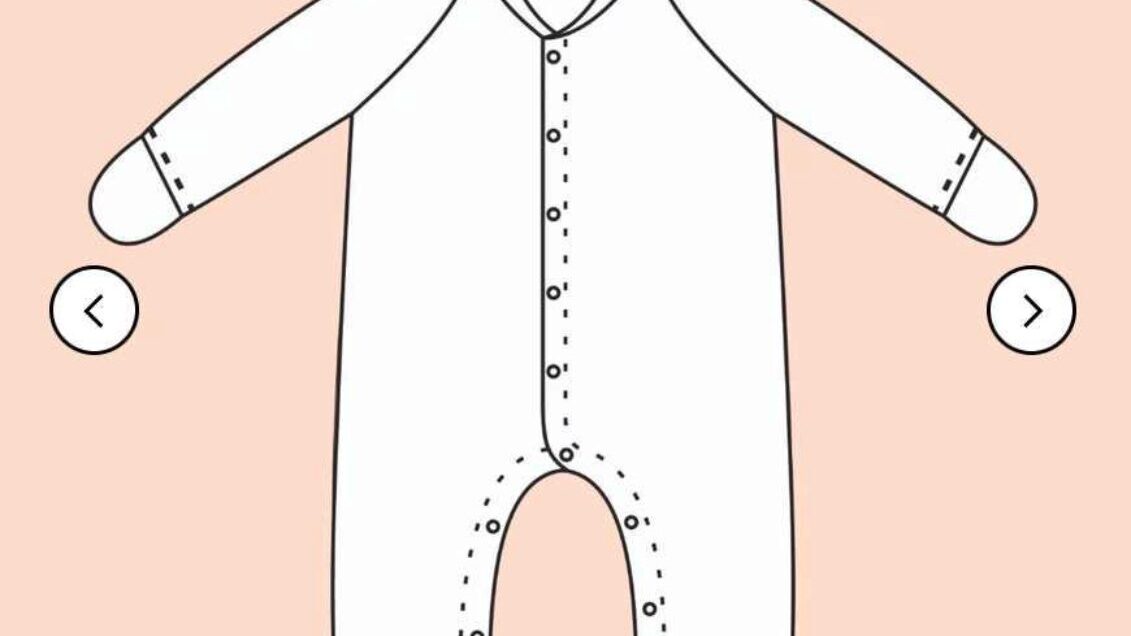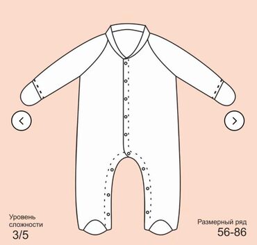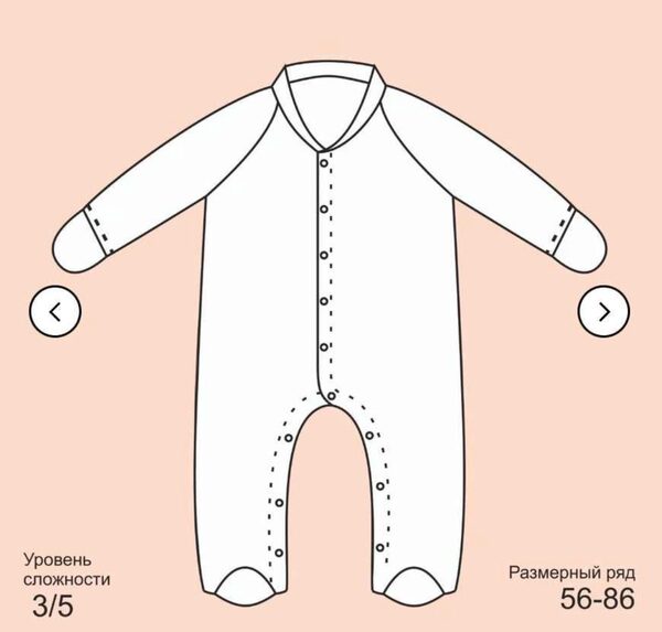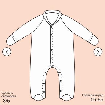 Боди для самых маленьких с застежкой на запах. Модель кимоно упрощает одевание малыша. Кнопки расположены по бокам, поэтому в положении лежа на животе не доставляют дискомфорта ребенку. Закрытый рукав выполняет роль интицарапок и имеет отверстие для освобождения ручки малыша. Выкройка дана для