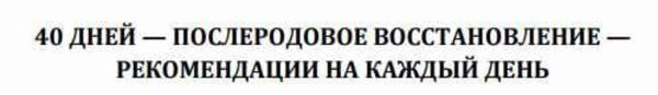 Самое важное, что программа написана пошагово — рекомендации на каждый день с 1-10 день, и общие советы с 10-20, затем с 30-40 и более подробно сам 40-й день. Для удобства мамы, расписано что делать, пить, принимать можно после пробуждения (а не «утром», так как утро после родов у всех наступает по-разному, и женщина долго еще живет под влиянием лунных энергий), перед обедом, после обеда и перед сном. Когда и что начинать. Также даются советы о том, когда и к каким послеродовым специалистам можно обратиться в этот период и что они с нами хорошего сделают.