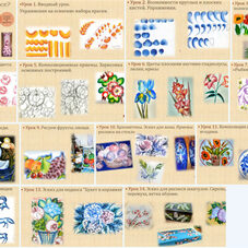 Серия упражнений для освоения работы с кистью, смешивания красок, освоения базовых элементов