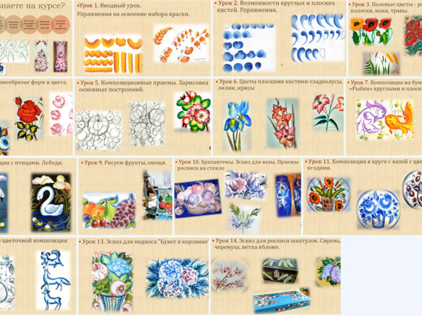 Отличный вариант для знакомства с различными видами русской росписи сразу! Для кого этот курс: Новичок - впервые взяли в руки кисть - наши уроки просты и доступны для любого возраста. Педагог или родитель - по нашей программе вы сможете обучать детей декоративно-прикладному творчеству. Художник -