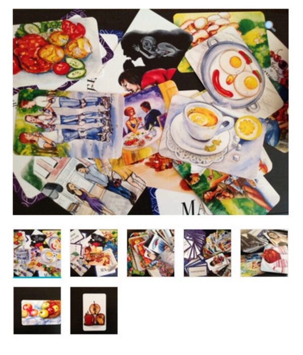 Пища есть не просто энергия жизни, это еще и способ «заесть» затянувшийся стресс. Это способ подавления неугодных мыслей, попытка возвращения контроля над собственной жизнью. Нарушение пищевого поведения распространенная проблема в современном обществе. Стандарты красоты предлагаемые глянцем, навязанные обществу взгляды и, конечно же, потеря связи с самим собой, своими чувствами и желаниями, способствуют тому, что современный человек начинает заглушать внутреннюю боль используя еду. Но этот путь обречен на провал, несущий в себе проблемы со здоровьем, как психическим так и соматическим. С помощью колоды «Хлеб насущный» можно попытаться разобраться в причинах, понять себя и осознать свои истинные потребности.
