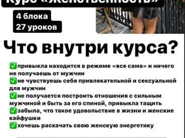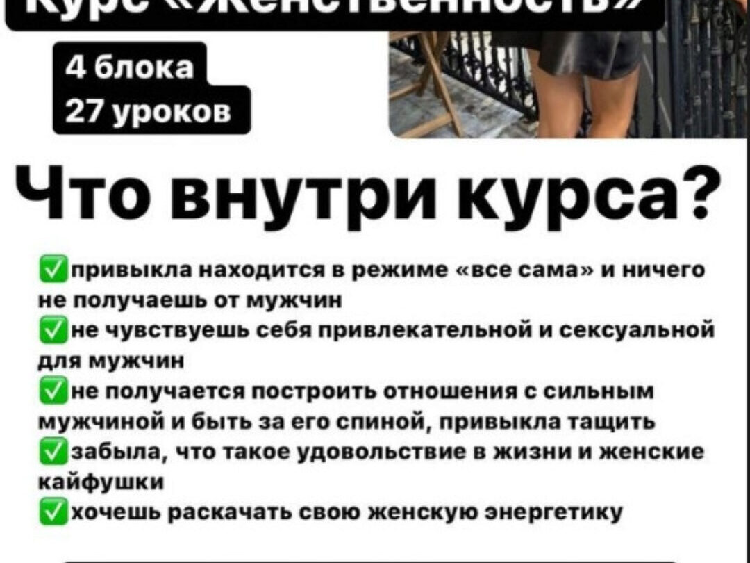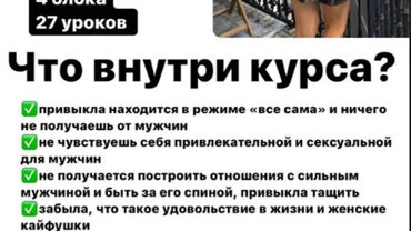 Если в отношениях ты часто попадаешь в слабую позицию, мужчины не хотят за тобой ухаживать и не видят твою ценность, в отношения с тобой не вкладываются. к тебе относятся без восхищения и обожания - тебе подойдет курс «Женская значимость». Курс состоит из 2-х ступеней 1 ступень - базовый уровень 7