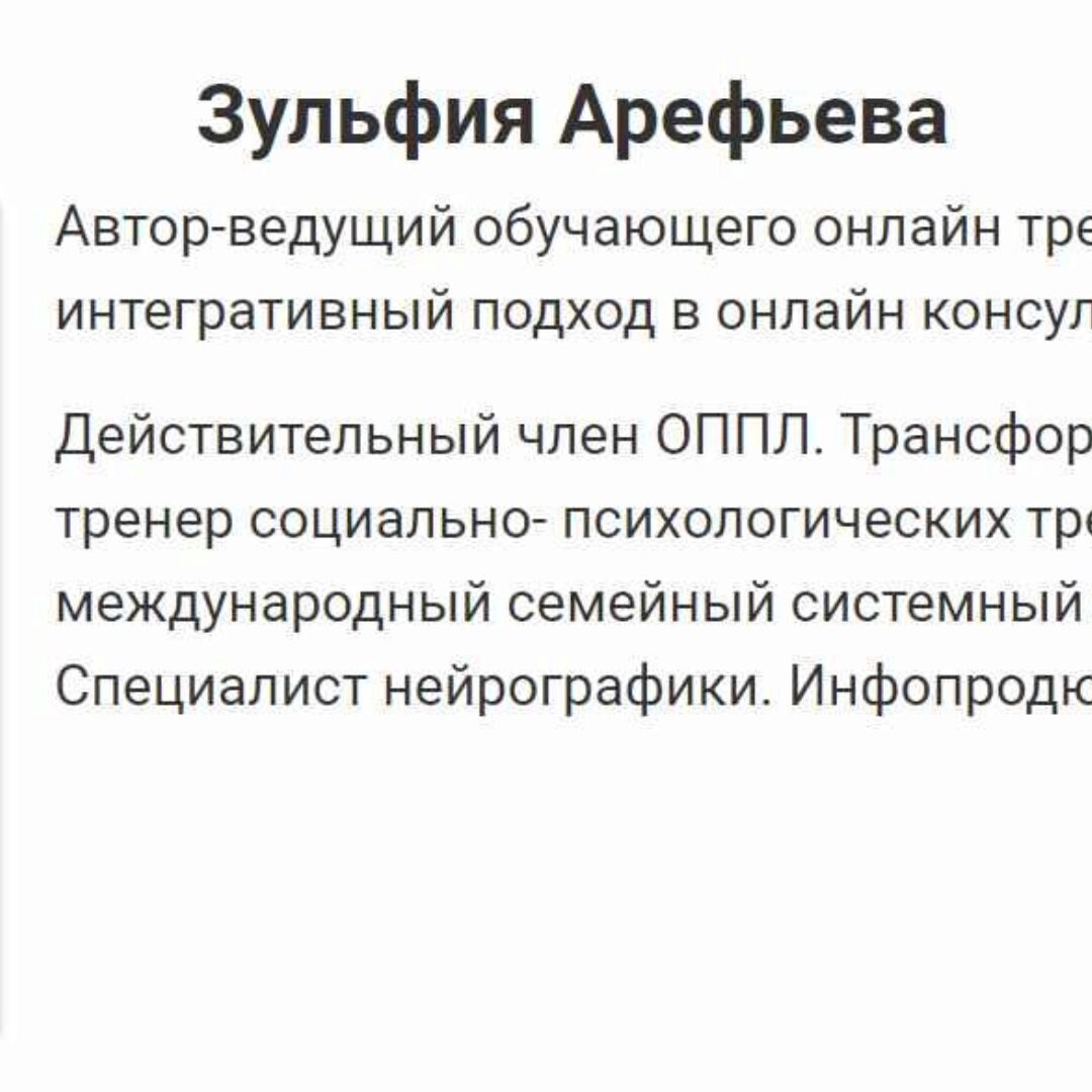 Купить другие курсы и тренинги от Зульфии Арефьевой